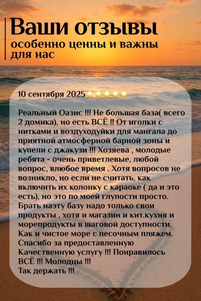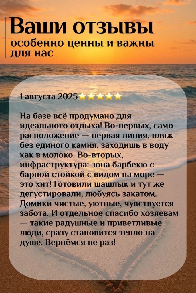 Мы построили это место с нуля, чтобы воплотить в жизнь мечту об идеальном отдыхе! Все наши домики — 2025/2026 года постройки. Приезжайте к нам, чтобы первыми оценить атмосферу уюта и свежести вдали от городской суеты.